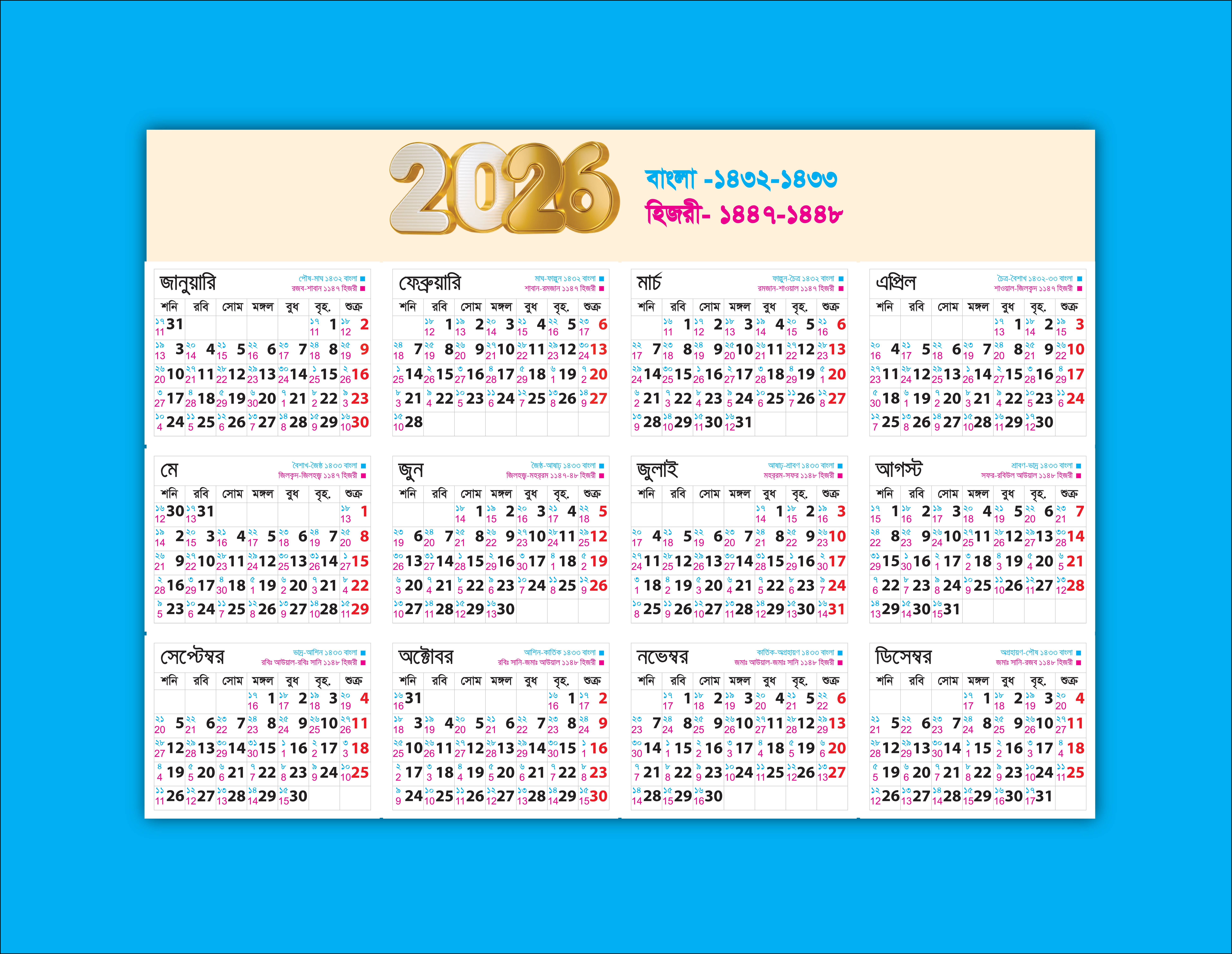 ✨ ২০২৬ সালের ক্যালেন্ডার ডিজাইনারদের জন্য ✨ ২০২৬ সালের ক্যালেন্ডার ডিজাইন করছেন বিভিন্ন প্রতিষ্ঠান, প্রিন্টিং হাউস বা গ্রাফিক ডিজাইনারদের জন্য প্রস্তুত করা হয়েছে একটি পরিপূর্ণ ...